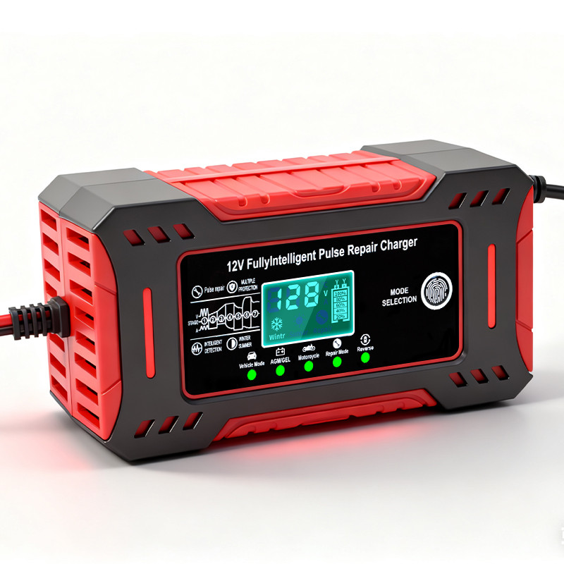 3) 12V / 6A Smart-Batterieladegerät (mit Temperaturkompensation) Damit Ihr Notstromaggregat für zu Hause im Ernstfall sofort startet, hält das vollautomatische 12-V-Smart-Batterieladegerät (bis 6 A) die Starterbatterie des Generators dauerhaft in Bereitschaft. Es lädt und erhält alle gängigen Blei-Säure-Batterien (AGM, GEL, Nass) zuverlässig – dank integrierter Temperaturkompensation auch bei schwankenden Lagertemperaturen in Keller oder Garage. Der Repair-/Puls-Modus reaktiviert tiefentladene Batterien, die LCD-Anzeige zeigt den Ladestatus jederzeit klar an. Schutzfunktionen gegen Verpolung, Kurzschluss und Überhitzung machen das Gerät absolut alltagssicher. Anschluss einfach per 230-V-EU-Schuko-Stecker – einmal anstecken, dauerhaft startbereit.